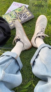 WM6欧洲站女鞋25秋时尚撞色牛猄皮拼布圆头系带休闲款平底德训鞋