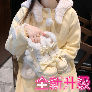 厚底增高毛绒可爱毛绒洛丽塔鞋子冬季鞋子雪地靴少女鞋保暖