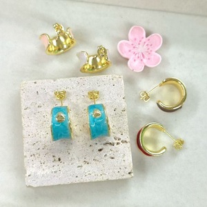 时尚个性不规则C字形滴油爱心耳环饰品轻奢气质铜镀18k高级感耳钉