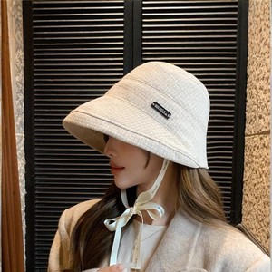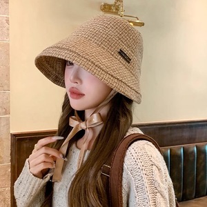 秋冬季简约小香风格纹渔夫帽子女2025新款时尚百搭卷边显脸小盆帽