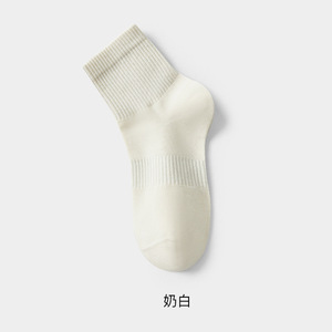 袜子女款春秋纯棉100%中筒袜无骨抗菌棉袜防臭运动黑白色全棉短袜