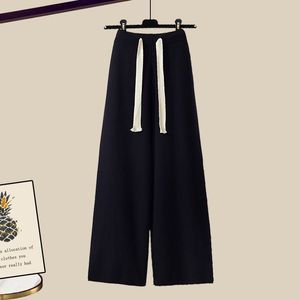 大码女装秋冬季套装2025新款加厚马甲百搭压皱毛衣阔腿裤三件套