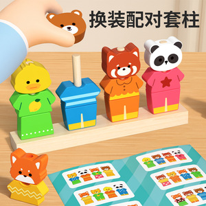 木质幼儿童早教颜色认知配对三维立体形状认知叠叠乐积木几何套柱
