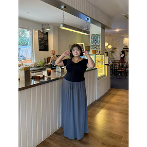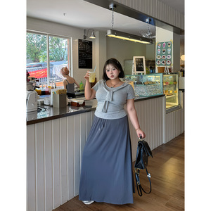 全球花【半身长裙】大码法式简约半身长裙高腰显瘦中长款a伞裙子