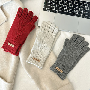 韩系麻花手套男冬季分指保暖针织防寒加厚触屏骑行手套学生手套女