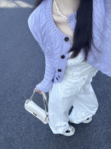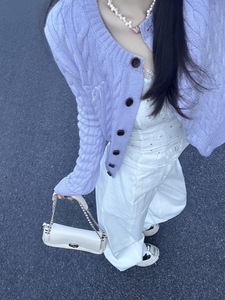紫色毛衣外套女春季穿搭新款韩系bm风复古蝴蝶结针织开衫长袖上衣