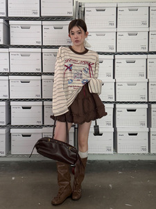 ME KAKAMEE十三行秋设计层次感麂皮绒木耳花边带安全裤半身裙 772