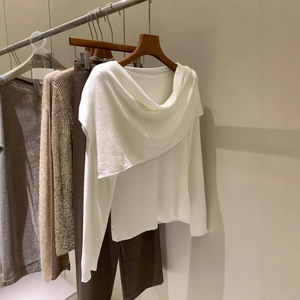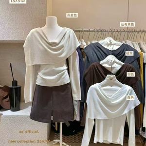 韩系复古高级感轻奢时尚气质针织打底衫上衣+披肩两件套2025秋季