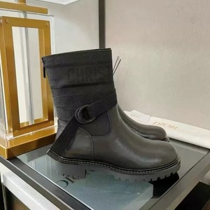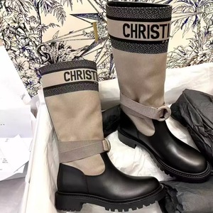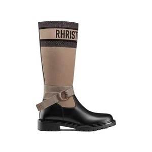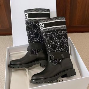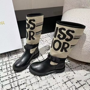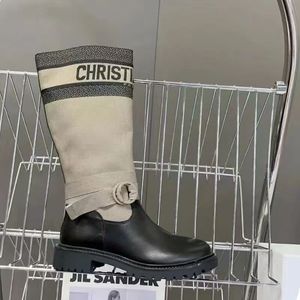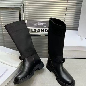 跨境D家针织长靴女 秋冬刺绣字母真皮厚底骑士靴粗跟长筒靴不过膝