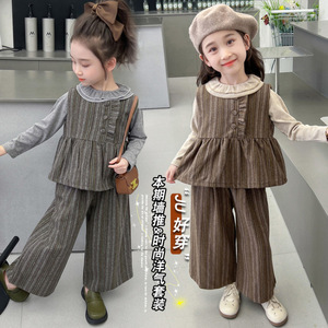 女童秋套装2025新款小香风娃娃领儿童衣服春秋款女宝宝早秋三件套