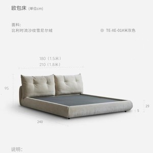 欧包布艺床【米灰色】【流沙纹雪尼尔绒】