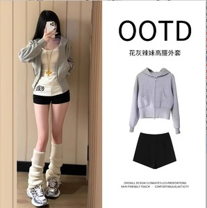 山东即墨卫衣女上衣2025秋季新款短款韩版修身连帽运动开衫外套