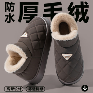 2025秋冬款老人棉拖鞋男款特大码室内家居厚底防滑保暖包跟棉鞋男