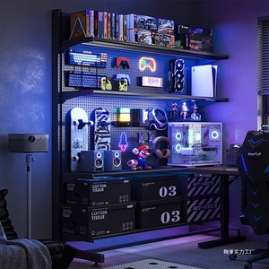 立式洞洞置物架落地电竞房间装饰金属收纳架免打孔电脑桌面改造