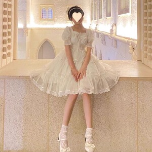 洛丽塔在逃公主裙成人生日小礼裙泡泡袖修身连衣裙超仙