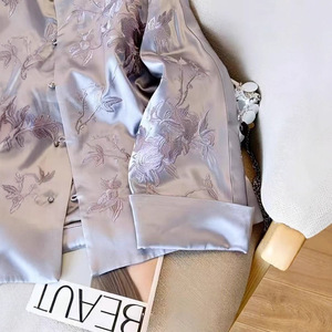 2025春秋款新款爆款新中式唐装中国风女装宋锦灰色刺绣外套春秋款