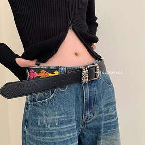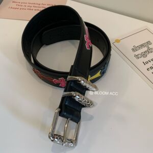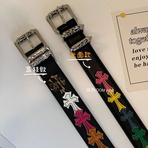 美式CH刺绣彩色十字架藤蔓针扣皮带男女同款个性潮流百搭腰带