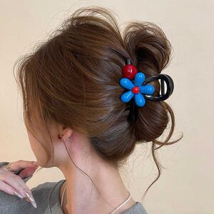 红珠蓝花朵高8抓夹 1个约8厘米