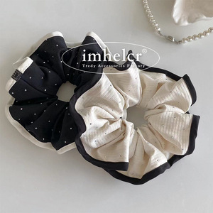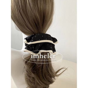 日韩ins烫钻格纹肌理包边大肠发圈小众气质百搭高品质后脑勺发饰