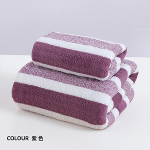厂家直销珊瑚绒宽条纹浴巾加厚吸水成人儿童洗脸毛巾现货批发跨境