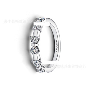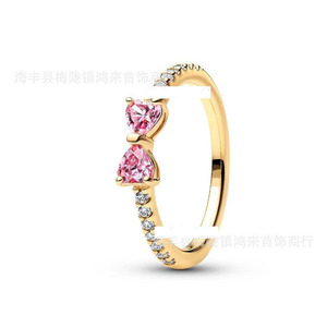 潘家白铜镀银镶钻红玫瑰花蝴蝶结简约爱心对戒卡通人物雪花系列