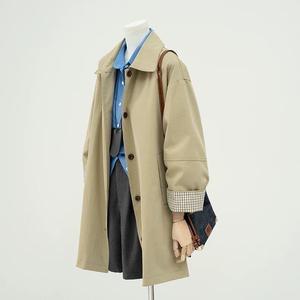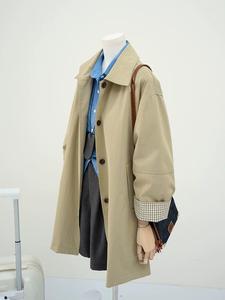 卡其色设计感格子袖休闲风衣外套女2025秋季新宽松显瘦中长款大衣