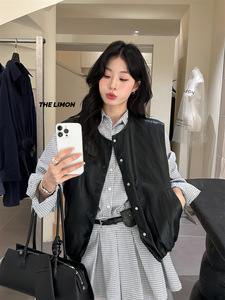 THE LIMON柠檬绿茶2025秋季时髦洋气百搭PU皮无袖马甲女韩系宽松