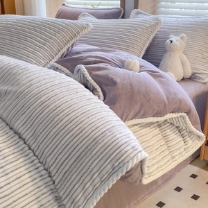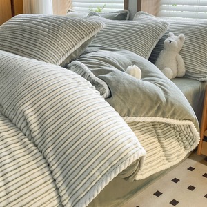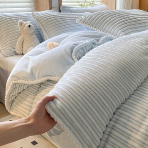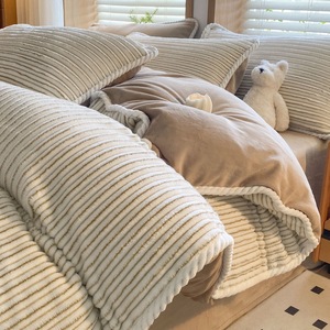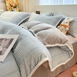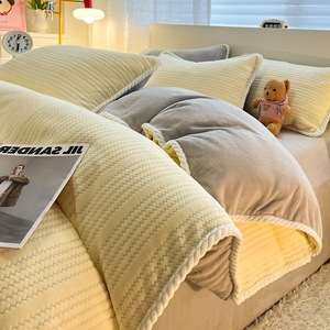 秋冬加厚绒四件套珊瑚绒提花牛奶绒四件套床上用品三件套床笠被套
