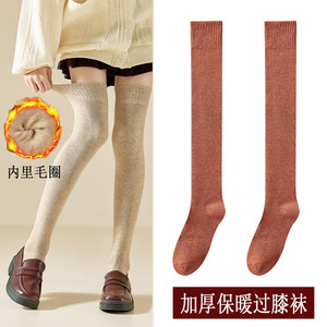 过膝加厚毛圈袜子女冬天保暖高筒小腿袜长筒护膝袜套黑色长袜女士