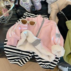 童装奥粒绒外套加绒男女童秋冬新款保暖时尚双面绒外套