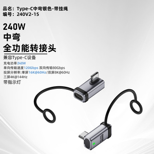 USB4.0延长转接头立体type-c公转母240w全功能转接头带挂绳指示灯