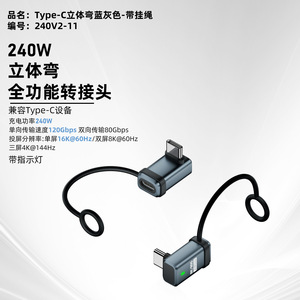240v2-12 C母转C母立体+挂绳 蓝灰