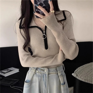 高级感半拉链翻领毛衣女秋冬内搭打底修身显瘦针织衫长袖短款上衣