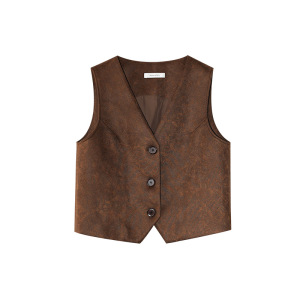 诠释美 NEWOPEN 25秋老钱风复古高级叠穿外搭v领短款马甲女F6559