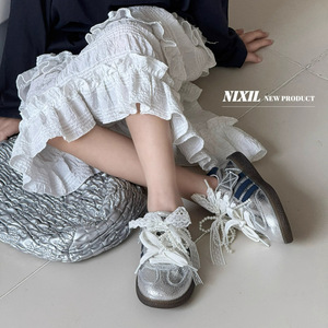 时尚2025年秋季新款韩版儿童休闲鞋复古蕾丝珍珠蝴蝶结女童德训鞋