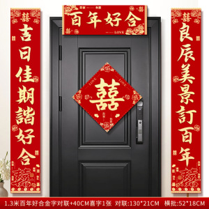 【1.3米】新婚快乐金字对联+喜字1张粘贴不留痕