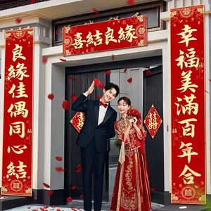 3米结婚对联男方农村大门喜联全套婚礼女方出嫁入户门喜字贴装饰