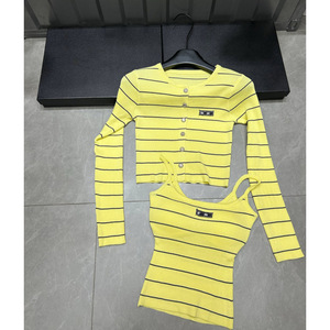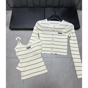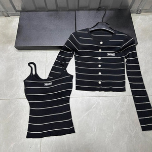25秋季新款nn家亮丝字母条纹针织长袖开衫+无袖套头吊带两件套装