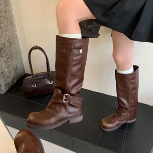 方头擦色高筒靴轻奢小众复古2025秋冬新款粗跟短靴小众女靴