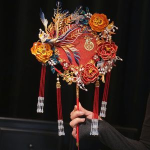 婚扇婚礼结婚非材料新娘出嫁刺绣遗缠喜扇扇子秀禾花中式高级团扇