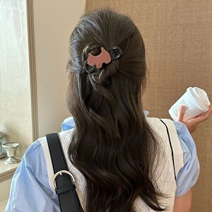 韩系焦糖色皮质小狗一字扭扭横夹通勤百搭后脑勺盘发夹高级感发饰