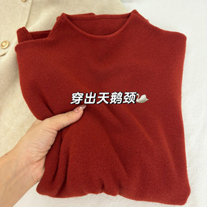 韩系小立领奶fufu软糯针织打底衫女秋冬大衣内搭简约中领毛衣上衣