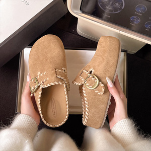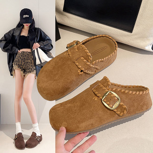 复古勃肯鞋包头半拖鞋2025秋季新款小个子内增高厚底博肯一脚蹬