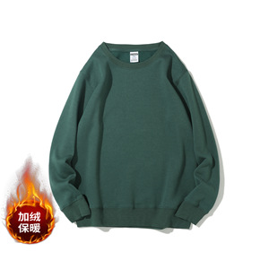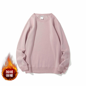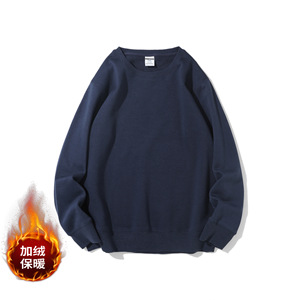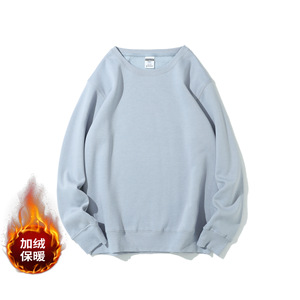 400g重磅棉感非饱和雾霾蓝纯色加绒卫衣厚实保暖运动宽松上衣男女