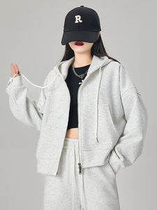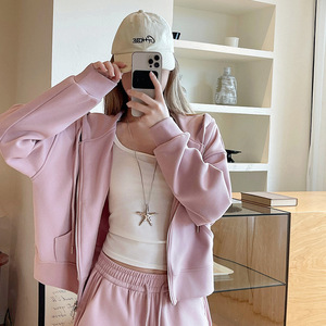 藏青色拉链连帽卫衣女春秋季小个子韩版宽松显瘦休闲外套百搭上衣
