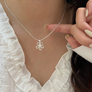 满钻太阳花镂空吊坠项链女简约小巧精致甜美轻奢ins风锁骨链项饰