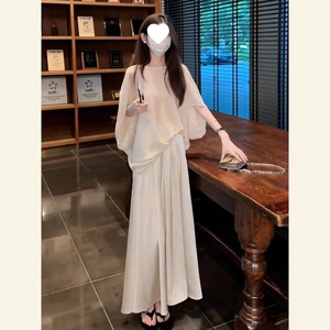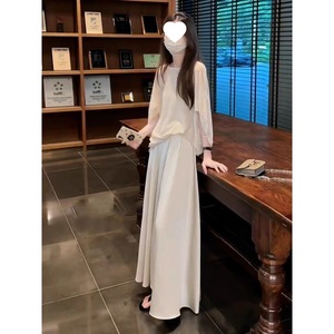 盛夏韩系清纯系穿搭轻奢感巨好看茶里茶气醋酸缎面连衣裙套装工厂