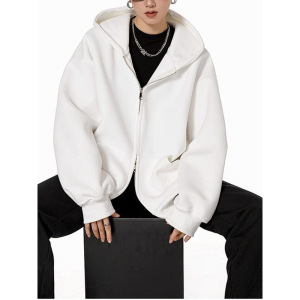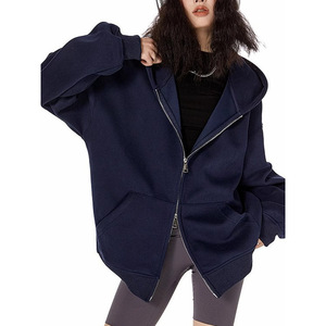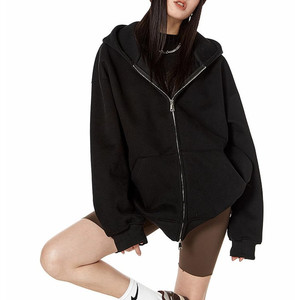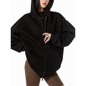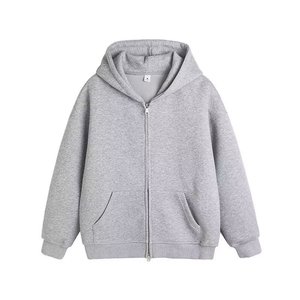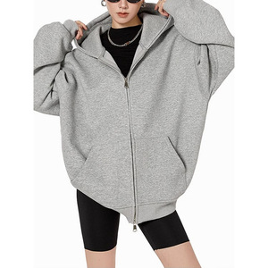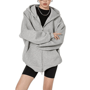 美式复古重磅灰色卫衣开衫女连帽外套秋冬纯色宽松休闲百搭上衣潮