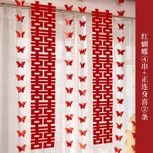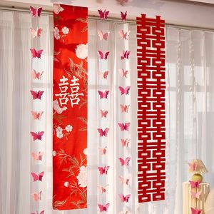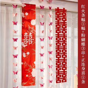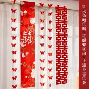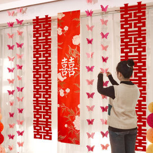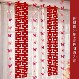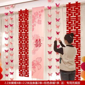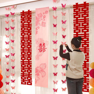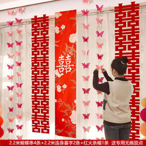 婚房布置长条喜字贴纸套装男方女方蝴蝶拉花窗帘卧室客厅装饰结婚