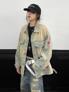 美式高街黄泥水洗做旧牛仔外套女春秋季新款复古宽松显瘦夹克外套